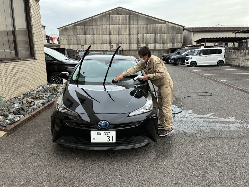 現場に行っている社員が多く、事務所にいた3名が各自の車両を手洗いしました。